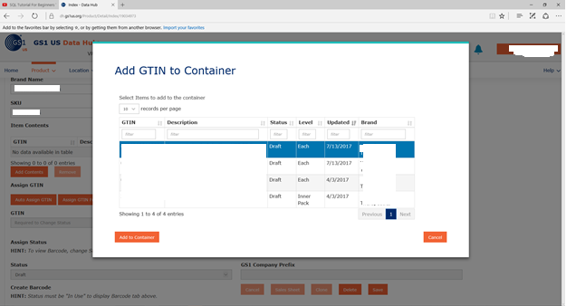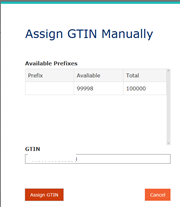- Enter the GTIN for the product (Pallets do not have GTINs) and click the