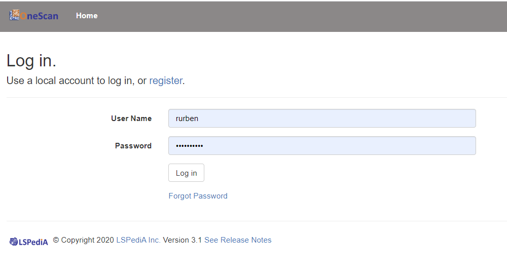 4.2 Open a browser and navigate to the OneScan login page: https://onescan.lspedia.com
