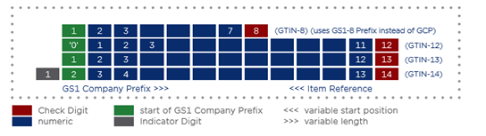 There are four GTIN formats. For applications that require a uniform 14-digit format, leading zeros need to be added: