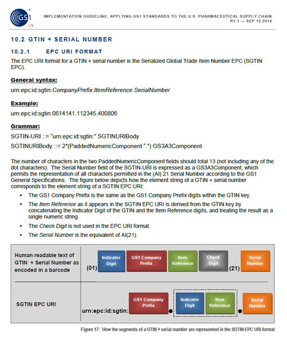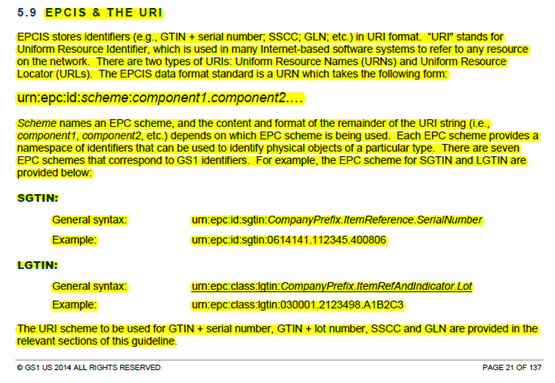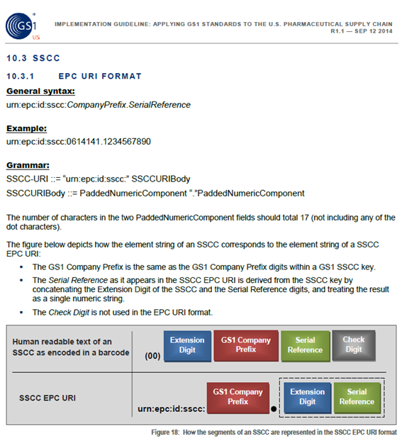 - McKesson: <epc>urn:epc:id:sscc:030001.00000000101</epc>
