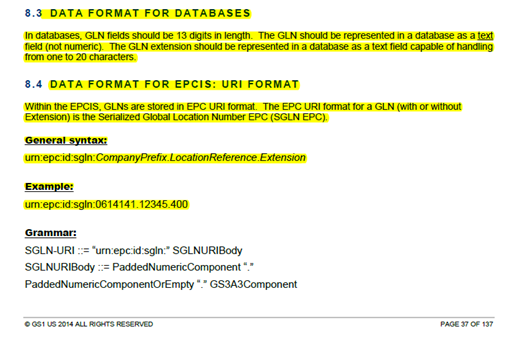 - Cardinal: <id>urn:epc:id:sgln:030014.000002.0</id>