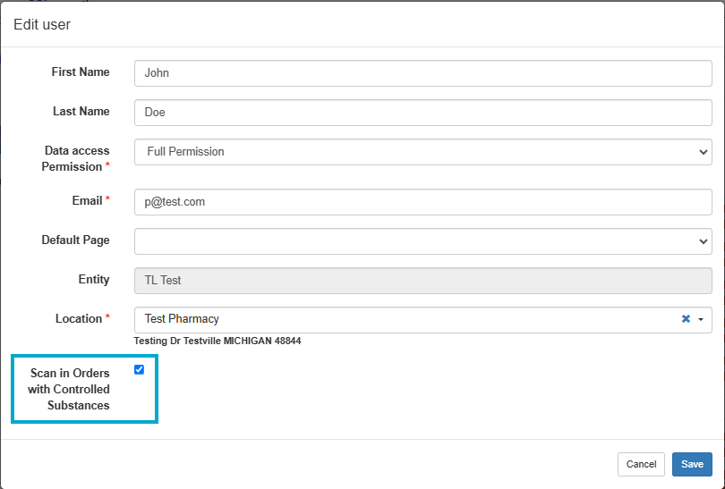 - If the user needs to scan controlled items, ensure the "Scan in Orders with Controlled Substances" option is toggled on. This setting can be adjusted at any time.