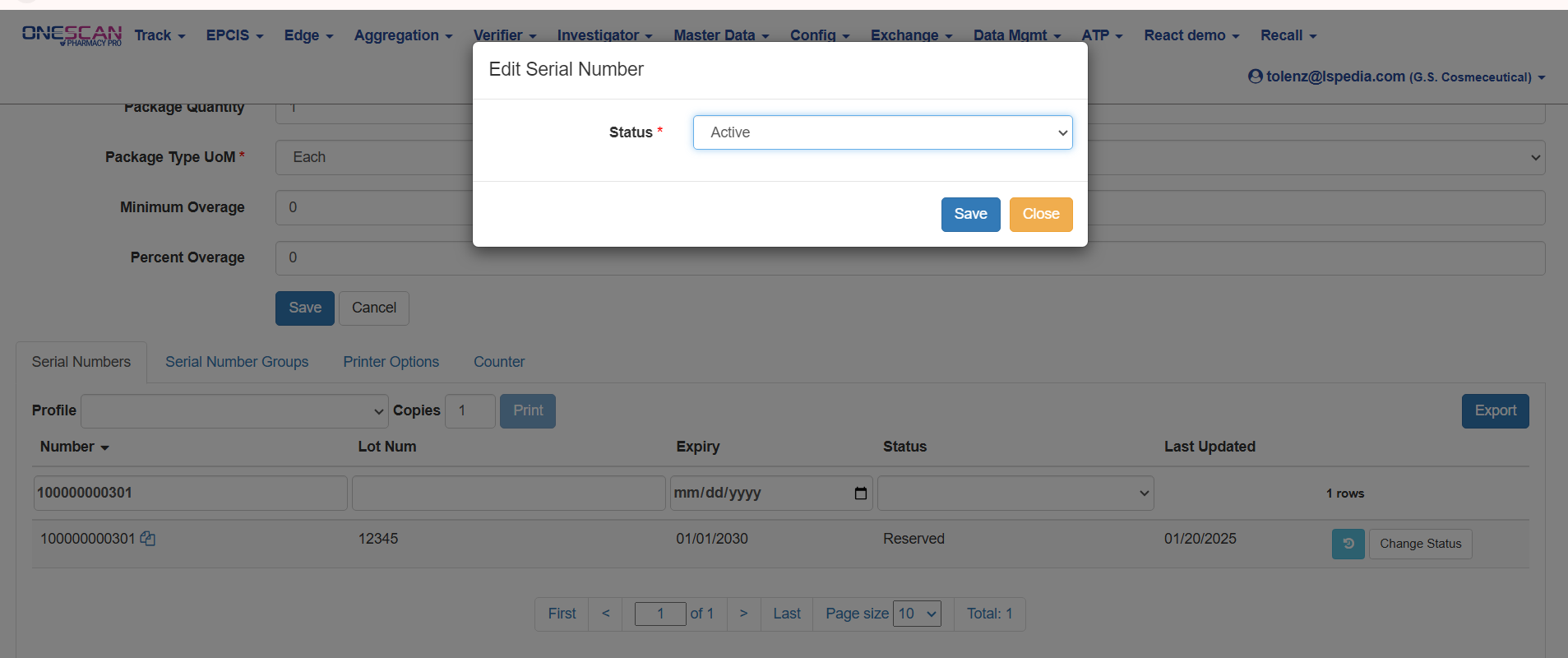 This article is to illustrate how to Change Serial Number Status for scanning out.