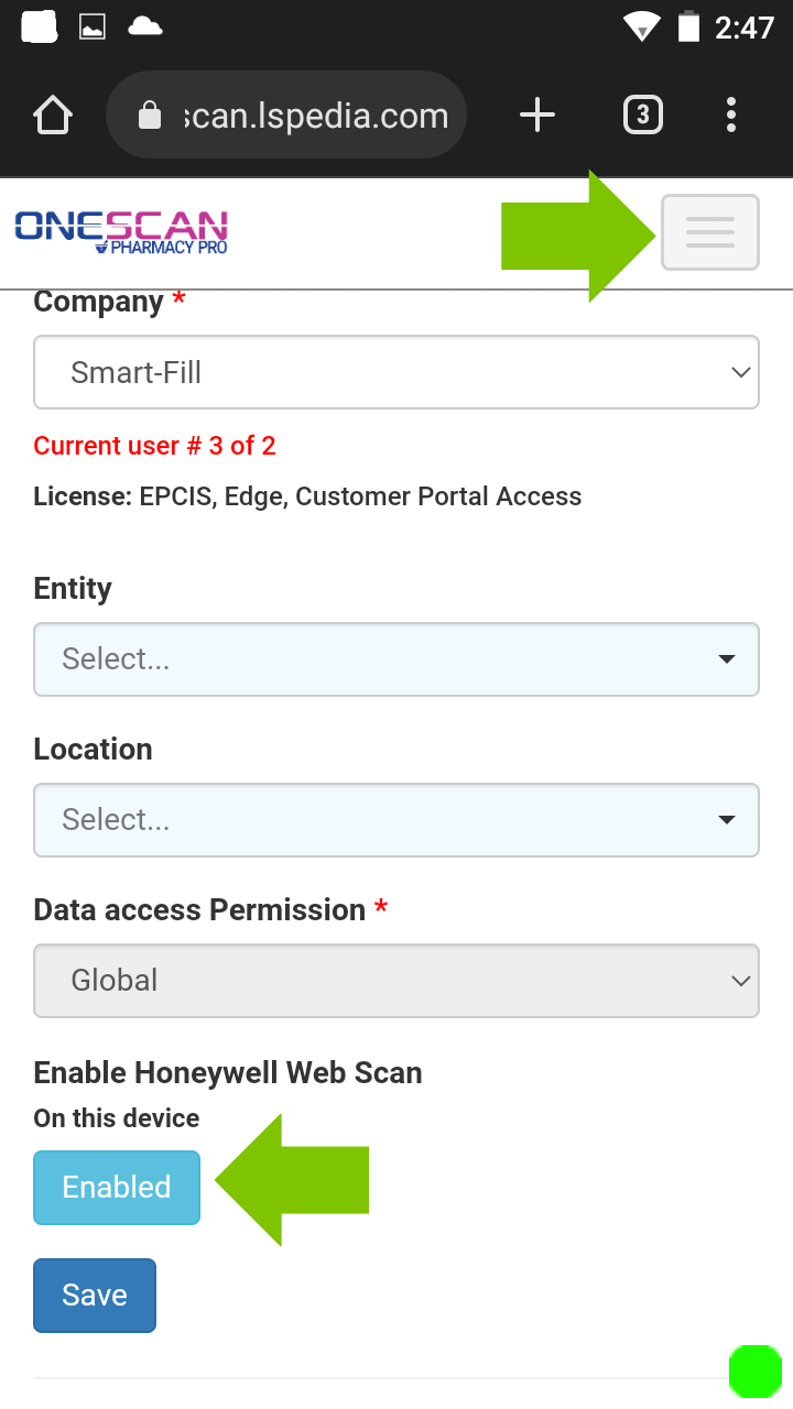 OneScan log in ->Profile -> scroll to the bottom -> disable honeywell setting -> refresh -> enable honeywell settings -> refresh