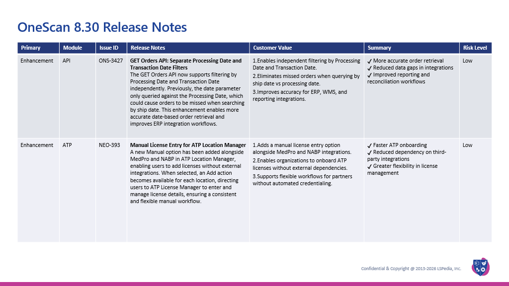 OneScan 8.30 Release Notes